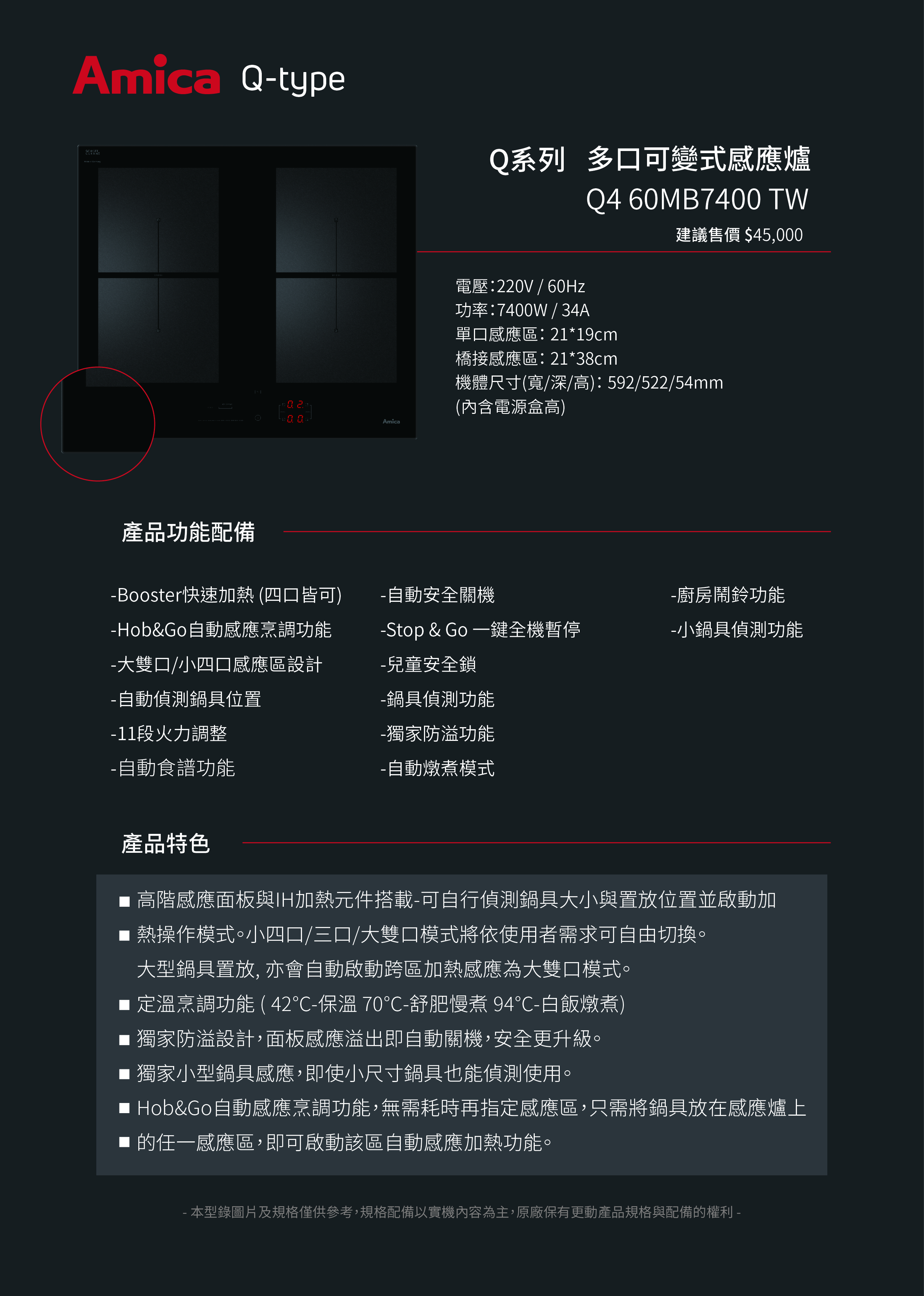 商品型號:Q4 60MB7400 TW功率:7400W / 34A
