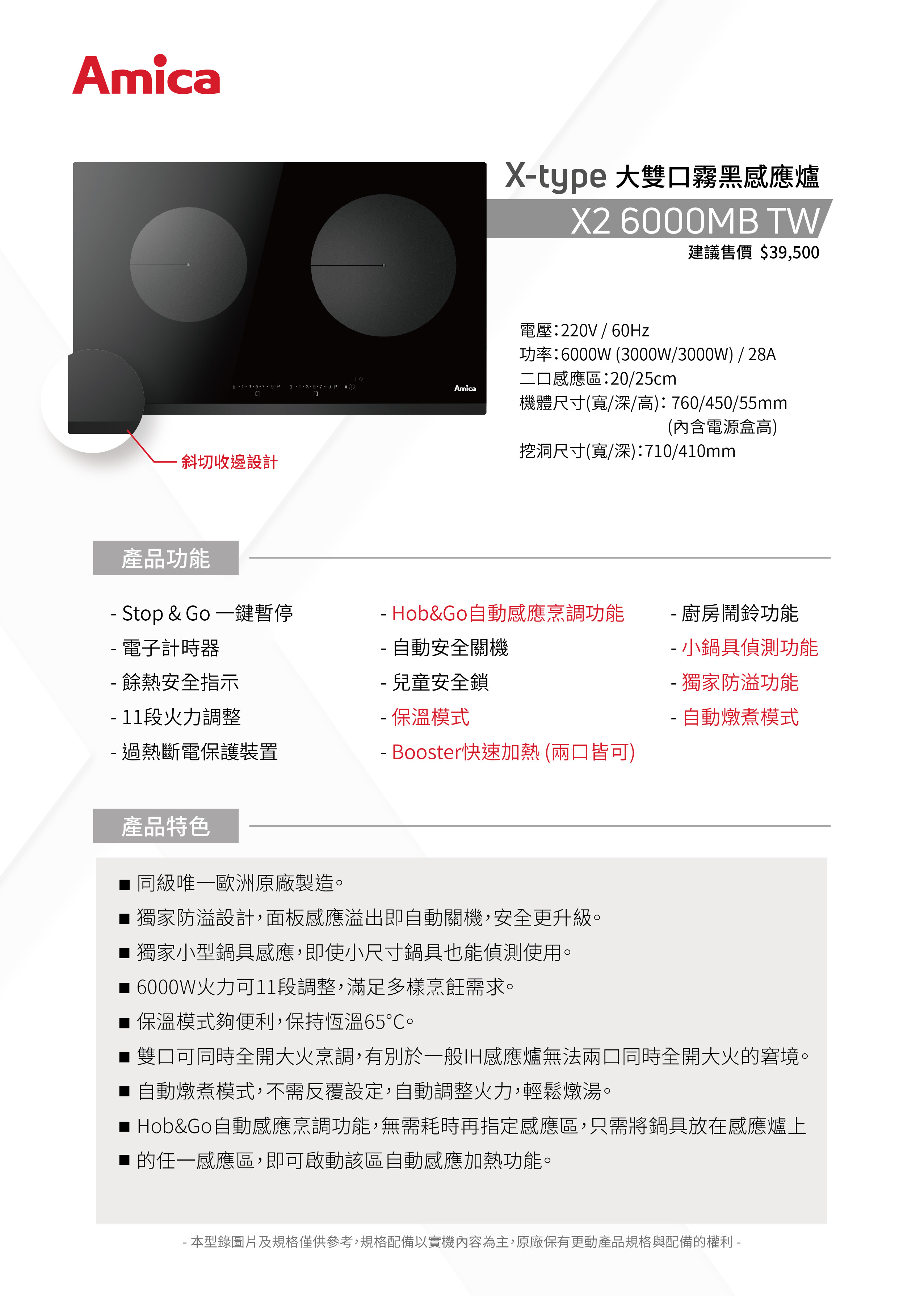 - Booster快速加熱 (兩口可同時全開)