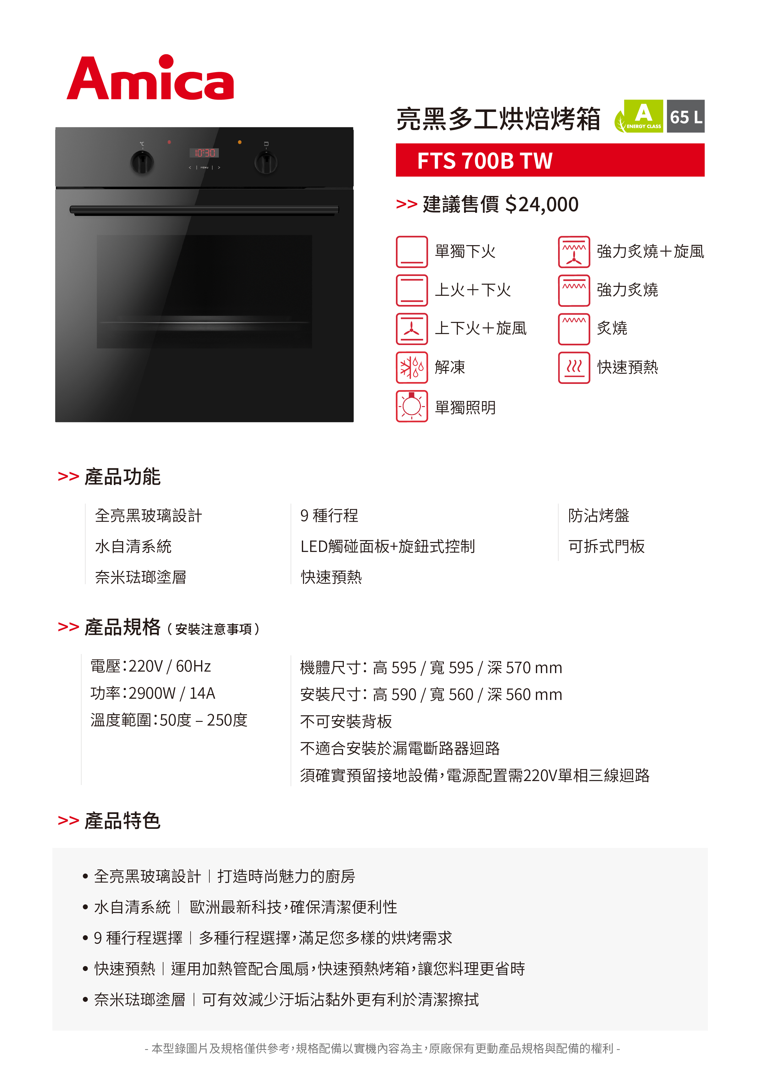 商品型號:FTS 700B TW電壓:220V / 60Hz