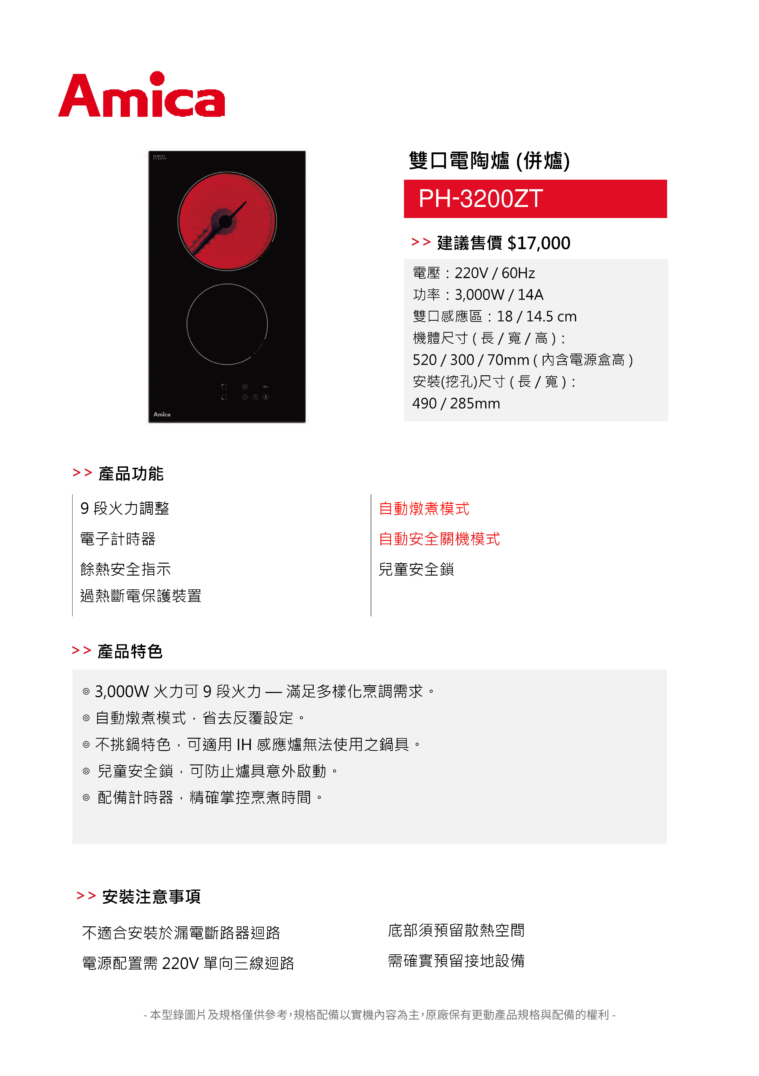 商品型號:PH-3200ZT功率:3000W / 14A