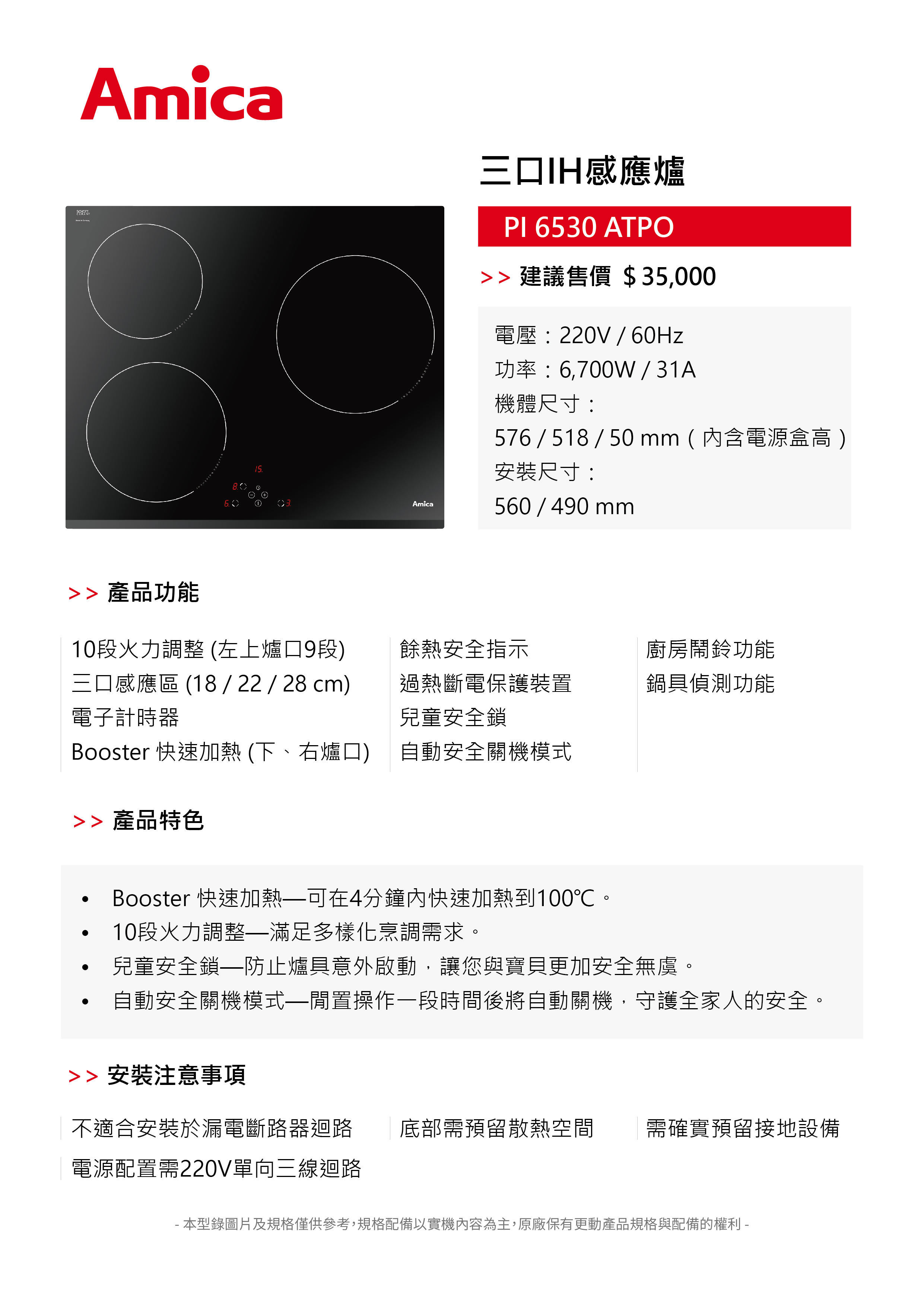 商品型號:PI 6530 ATPO功率:6700W / 31A